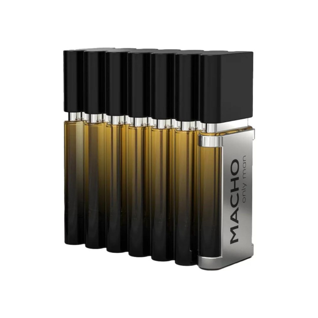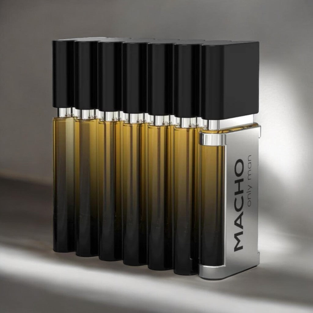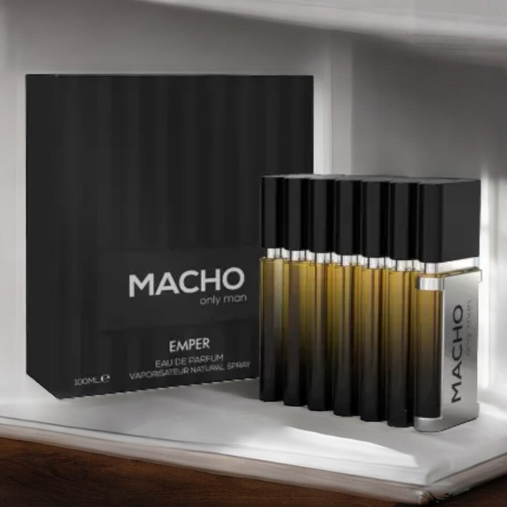 Macho Only Man is positioned as a confident and charismatic fragrance for men. It combines fresh citrus notes with spicy and woody elements to create a bold and masculine scent.