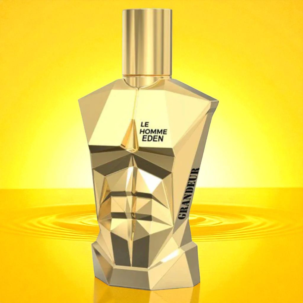 Introducing Grandeur Le Homme Eden 3.4 oz EDP, a luxurious and sophisticated fragrance for men. Featuring a unique blend of bergamot, lavender, and geranium with spicy notes of cardamom and cinnamon, this scent is elevated by a base of leather, cedarwood, and musk. Experience the perfect balance of freshness and warmth with every spritz.